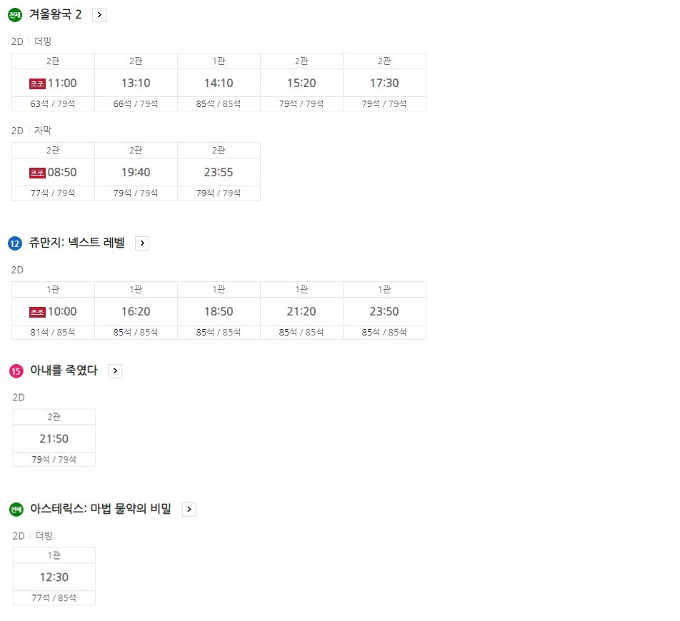 이번 시간에 준비한 소식은 안성 롯데시네마 상영시간표 입니다.
