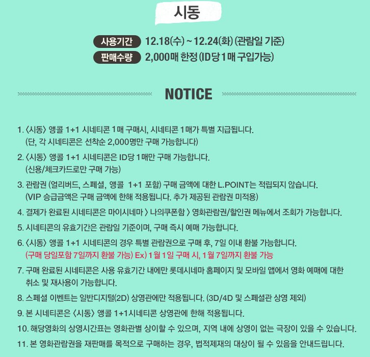ID당 1매씩만 구매가 가능하다는 점 참고하시고 영화 관람을 계획하고 있다면 꼭 활용해 보시기 바랍니다.