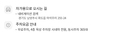 주차정보를 살펴보면 당일 영화관람객들에게 무료주차를 제공하고 있습니다. 롯데마트에 입점해 있다 보니 주차공간이 넉넉해서 영화 관람 후 마트에서 장을 보는 분들도 많다고 합니다.