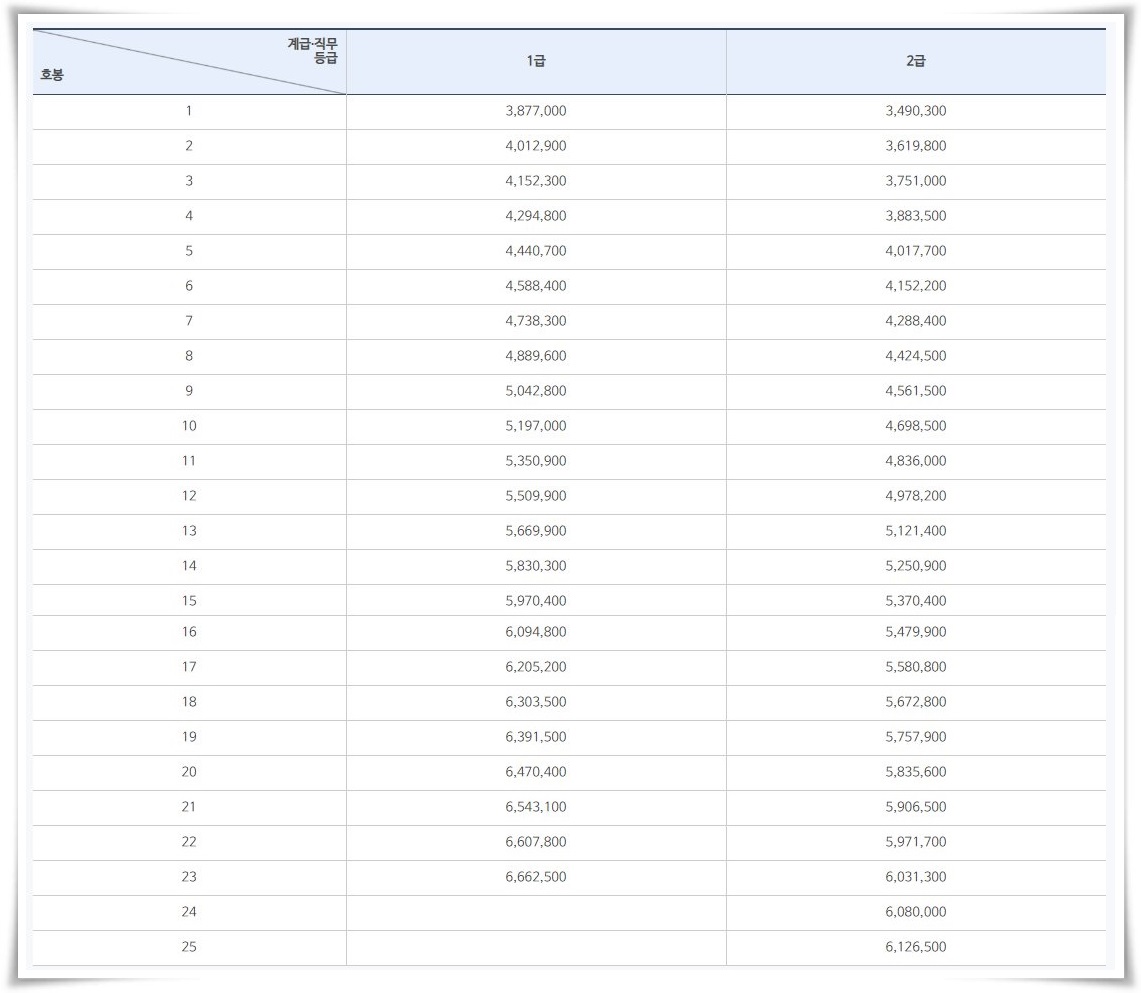 공무원 봉급표를 보면 매년마다 조금씩 인상이 되는 것을 확인할 수 있습니다.