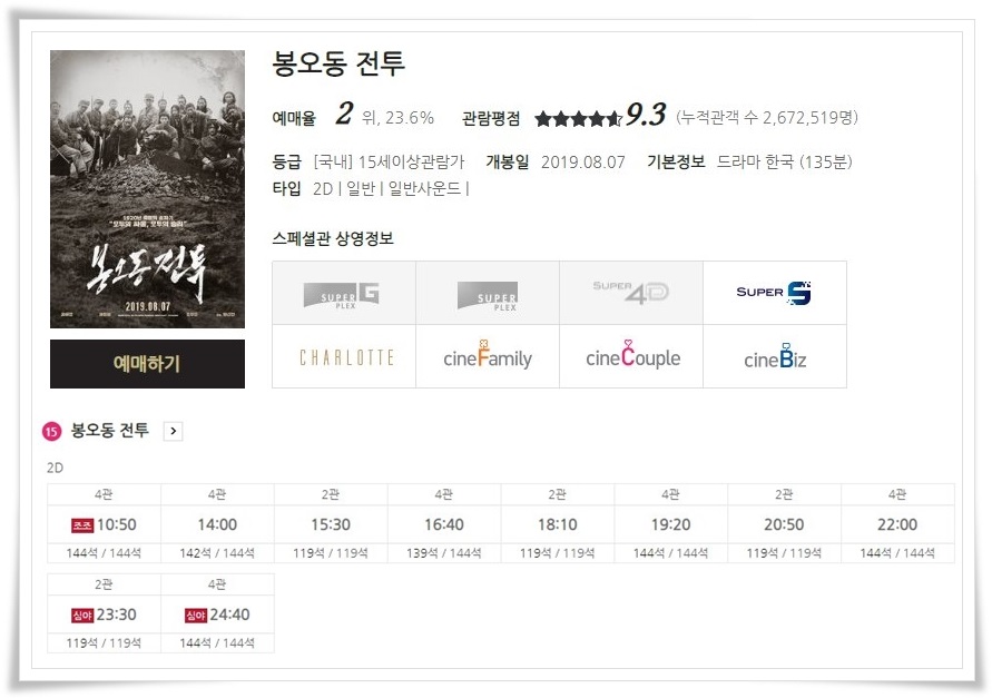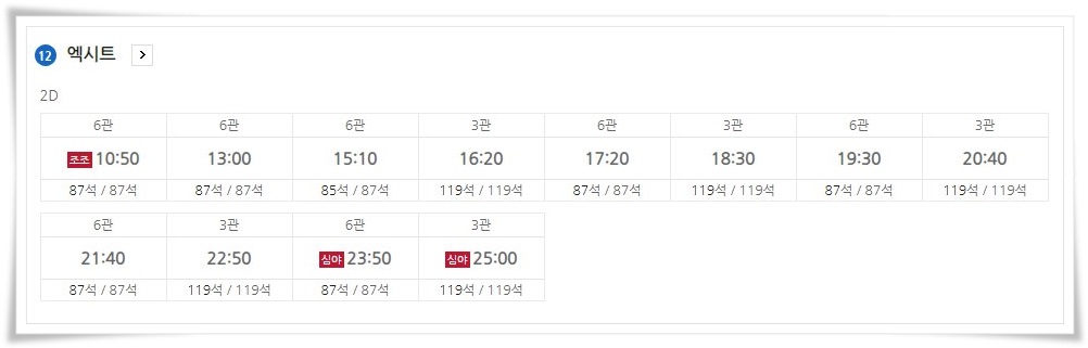 오늘 하루 상영 예정만 총 12번에 이를 정도로 많은 인기를 얻고 있습니다.