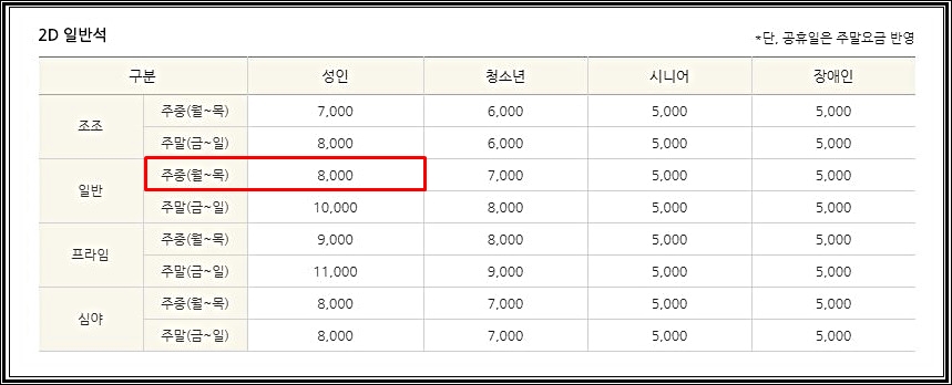 제주 롯데시네마 요금을 살펴보면 일반 주중 요금의 경우 8,000원이라고 합니다.