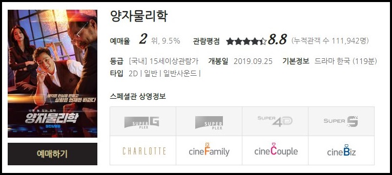 9월 25일 개봉한 양자물리학이 예매순위 2위를 달리면서 주말 극장가를 달구고 있다고 합니다.