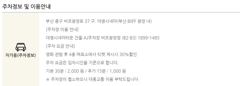 당일 영화관람객들에게는 무료주차가 제공되지는 않으며 기본 30분에 2,000원의 요금을 받고 있습니다.