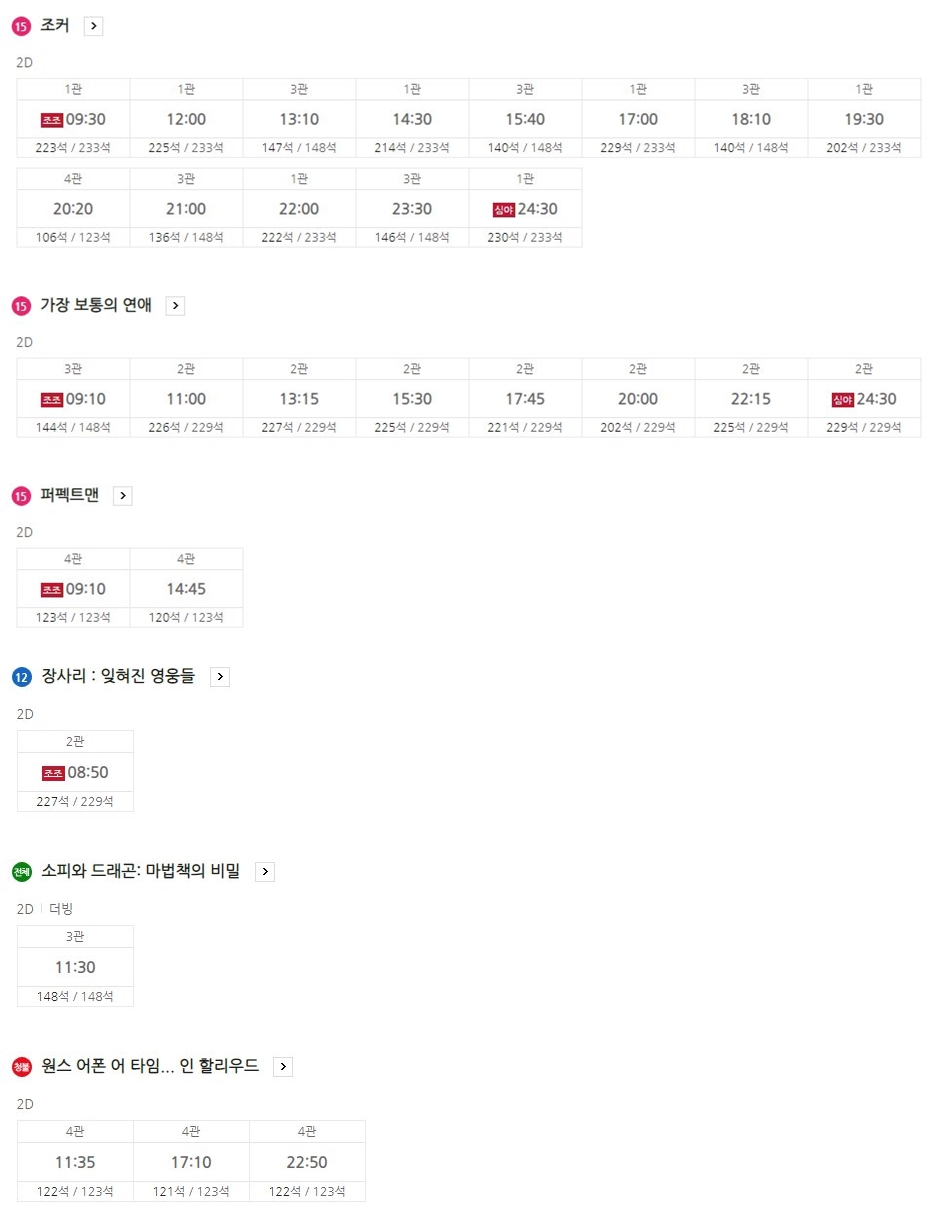 하지만 대부분의 영화들이 인기작들인 만큼 영화를 관람하는 데는 문제가 없을 것 같습니다.