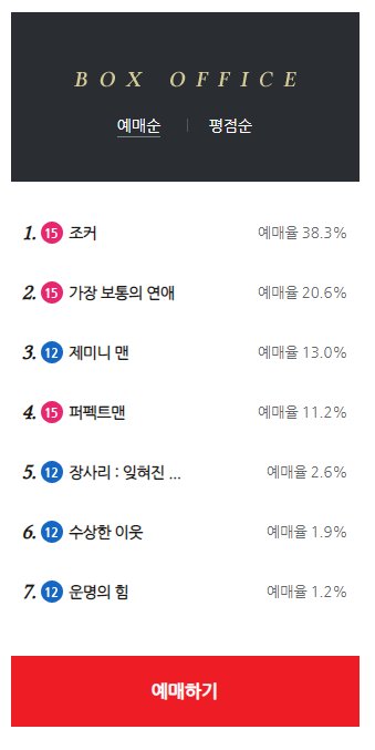롯데시네마 실시간 예매순위