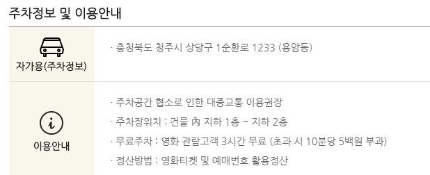 청주용암 롯데시네마 주차장은 협소하기 때문에 가급적이면 대중교통 이용을 권장하고 있습니다. 부득이하게 자가용을 이용하실경우 무료주차는 3시간까지 제공됩니다.