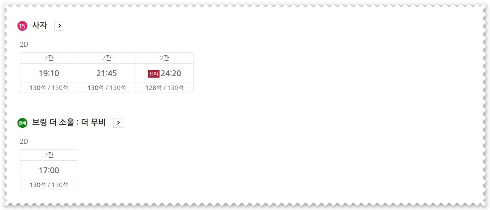 평일임에도 불구하고 오늘 하루 상영 예정만 10번 예정입니다.