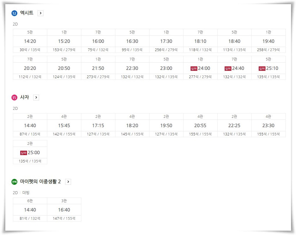 영화 순위에서 1위를 달리고 있는 만큼 오늘 하루 총 16편의 상영이 예정되어 있습니다.