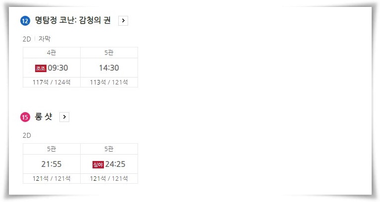 아래는 영화별 상영시간표 목록입니다. 당일 상영시간표 인 점 참고하시고 다른 날짜의 상영시간표가 궁금한 분들은 롯데시네마 홈페이지를 참고하시기 바랍니다.