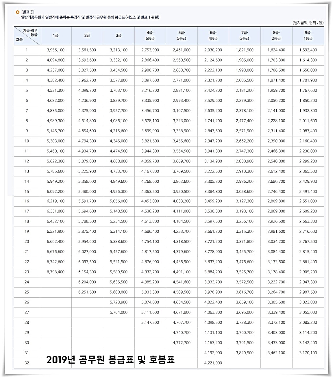 2019 공무원 봉급표 부터 호봉표 정리, 얼마나 올랐을까?