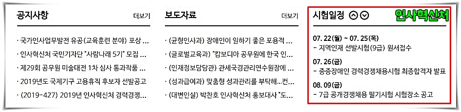 정부에서 직접 운영하는 인사혁신처 홈페이지에 들어가면 위와 같은 다양한 정보를 확인할 수가 있습니다.