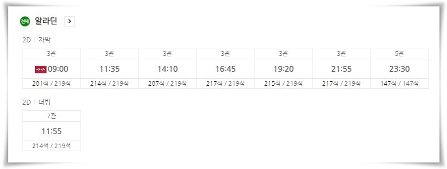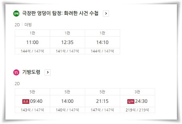 오전 8시 40분 조조할인 영화부터 시작해서 저녁 24시 50분 심야영화까지 매 시간대마다 상영 중입니다.