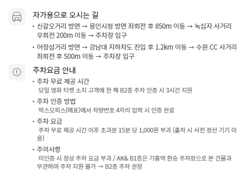 무료주차가 제공되는 만큼 편리하게 영화감상을 할 수 있을 것 같습니다.
