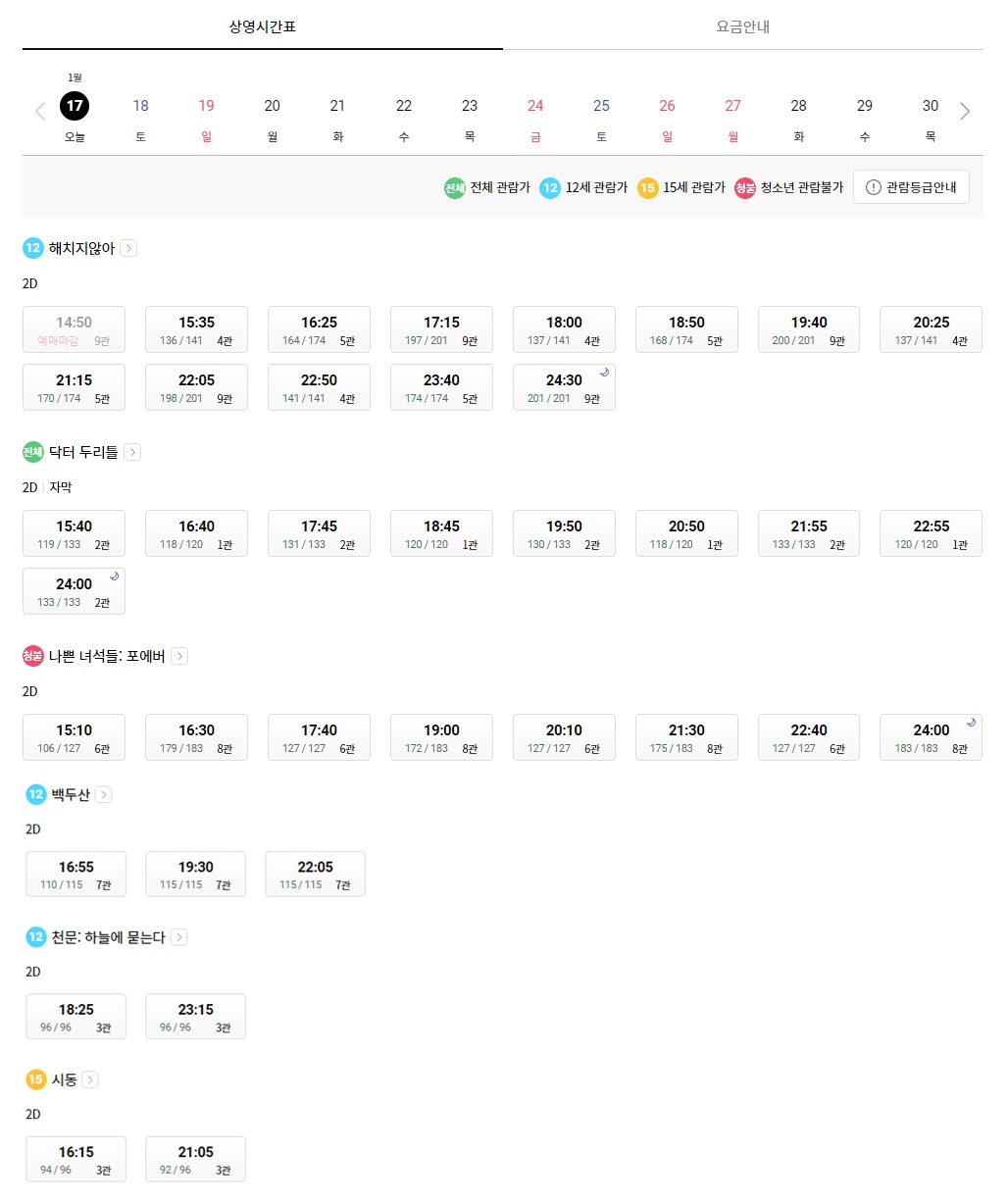 부평역 롯데시네마 상영시간표