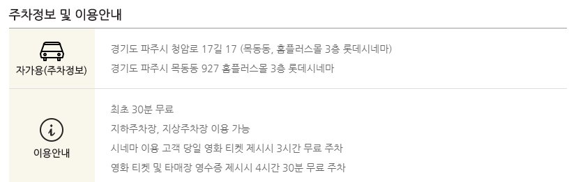 파주 운정 롯데시네마 주차장 정보를 살펴보면 홈플러스에 입점해 있어서 주차공간이 넓은 것이 장점이면서 당일 영화 관람객들에게 3시간의 무료주차를 제공해주고 있습니다.(타 영수증 중복 합산 가능)
