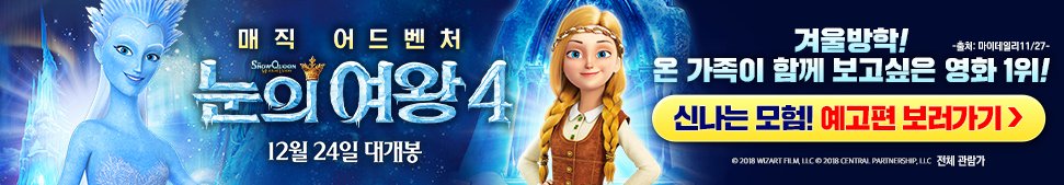 크리스마스를 맞이하여 아이들이 보기 좋은 눈의 여왕 4 가족단위로 크리스마스를 즐기기에 좋은 영화인 것 같습니다.