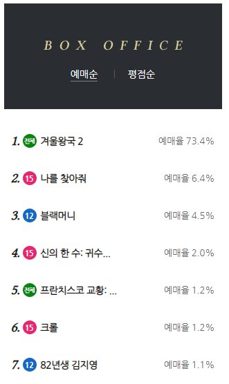 영화관람을 계획하고 있다면 영화예매 순위도 소개하고 있으니 참고하시면 좋을것 같습니다.