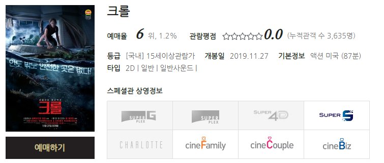 오늘 개봉한 영화인 크롤도 상당히 기대가 되는 영화입니다.