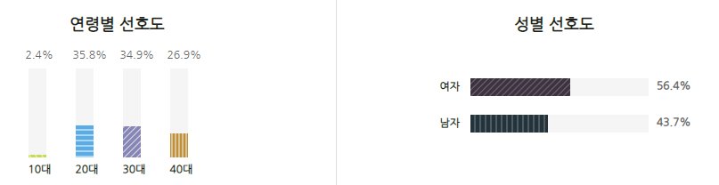 연령별 선호도를 살펴보면 20~40대까지 골고루 관람을 하고 있다.