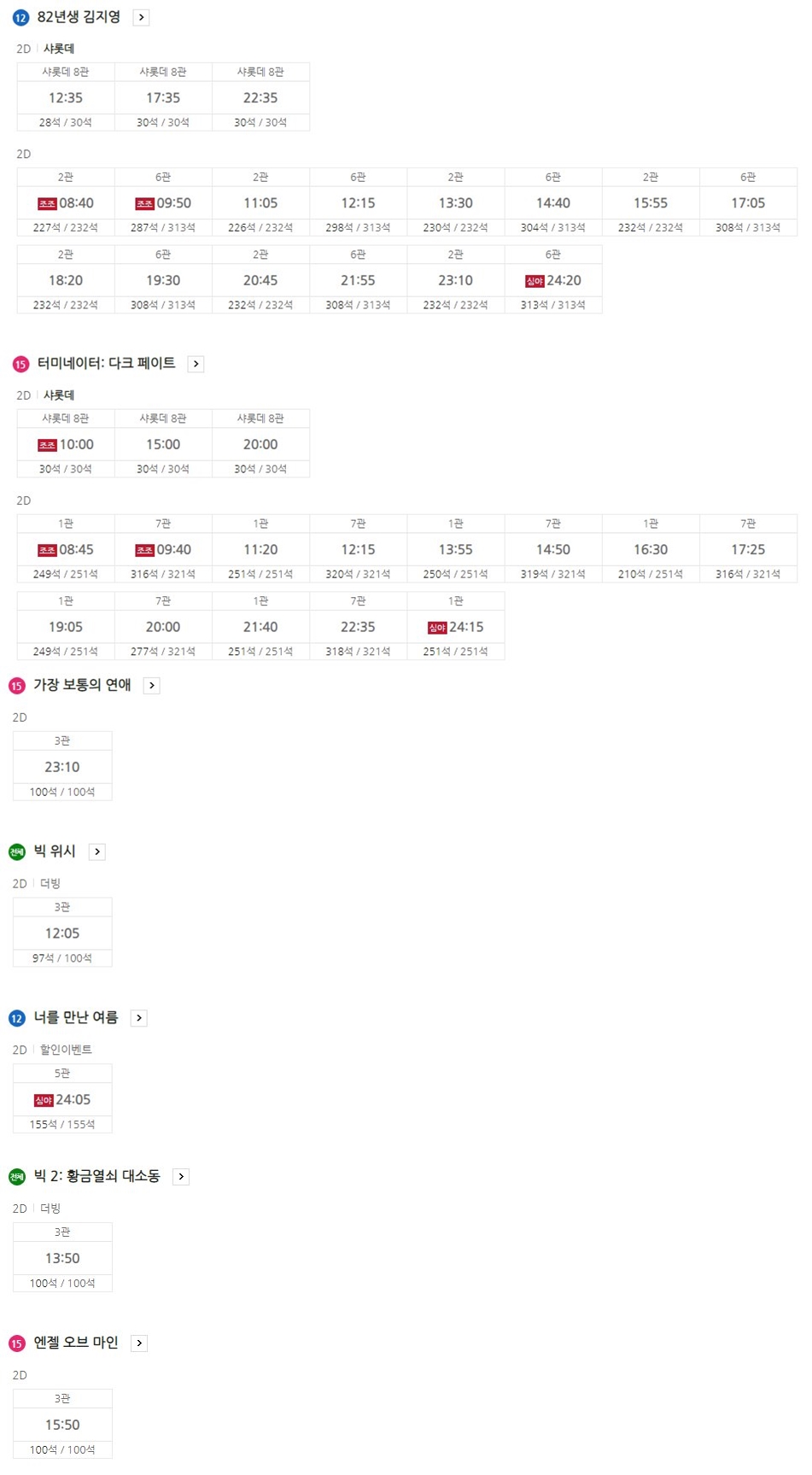 평촌(범계역) 롯데시네마 상영시간표