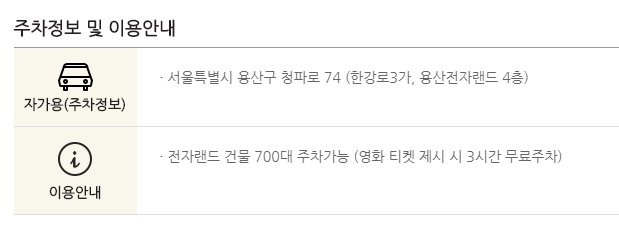 용산 롯데시네마 주차요금의 경우 당일 영화관람객에게 3시간의 무료주차를 제공하고 있습니다.