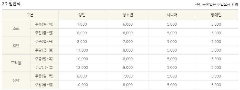 공휴일의 경우 주말 요금을 적용하고 있는데요. 주중 일반요금의 경우 8,000원 주말 요금의 경우 11,000원입니다.
