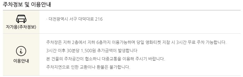 대전 센트럴 주차장은 영화관이 입점해 있는 건물의 지하 주차장을 이용할 수 있습니다. 당일 관람객은 3시간까지 무료주차가 가능하다고 합니다.