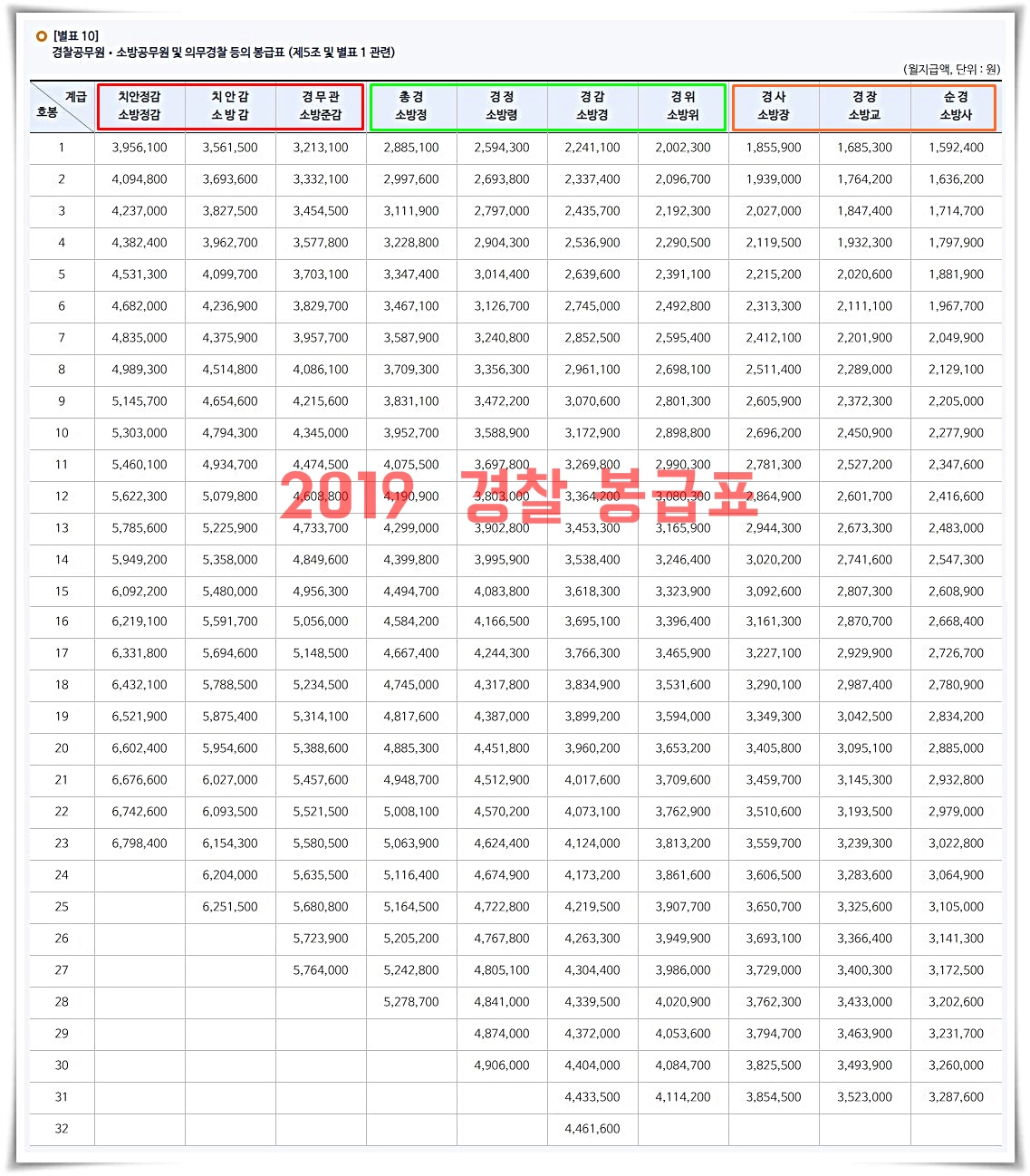 2019 경찰 봉급표 및 경찰 계급별 직급안내