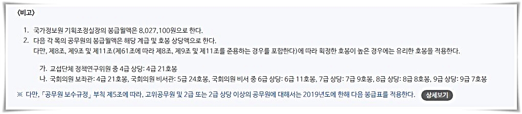 이에 따라 고위 공무원단의 경우 기존 2018 공무원 호봉표의 적용을 받게 된다고 합니다.