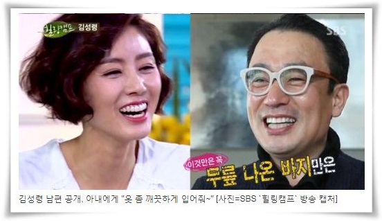 겉보기와는 달리 소탈하면서도 프리한 모습을 집에서 보여준다고 하는데요 SBS에서 방송된 힐링캠프에 나온 김성령 남편 이기수 씨는 옷 좀 깨끗하게 입어달라고 부탁하기도 했습니다.