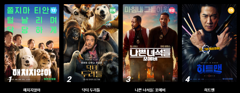 안녕하세요 주말이 되면 많은 분들이 영화 관람을 계획하곤 하죠. 최근 다양한 장르의 영화들이 개봉하면서 볼거리가 많아졌는데 현재 어떤 영화들이 상영 중인지 알아봤습니다.