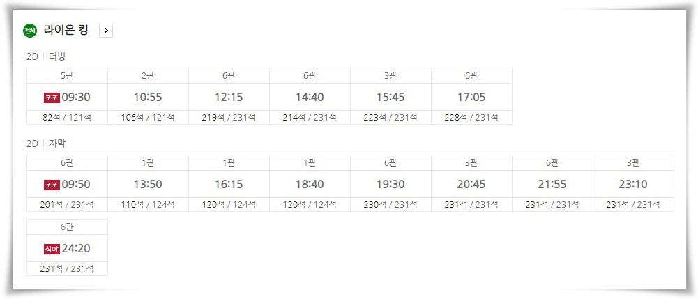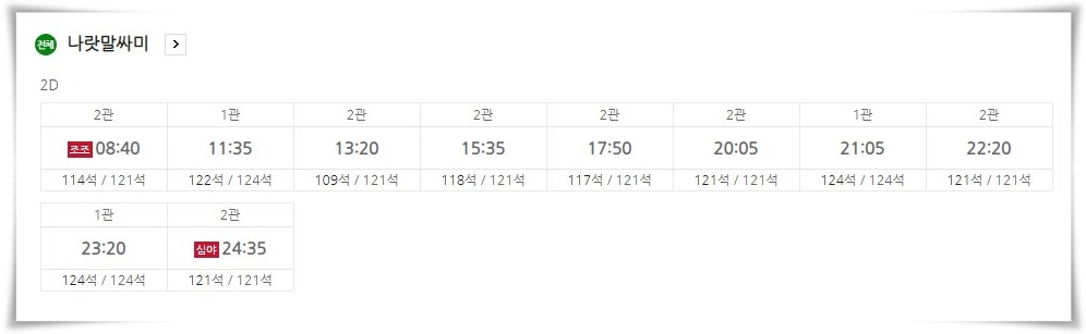 아래는 영화별 상영시간표 목록입니다. 당일 상영시간표 인 점 참고하시고 다른 날짜의 상영시간표가 궁금한 분들은 롯데시네마 홈페이지를 참고하시기 바랍니다.