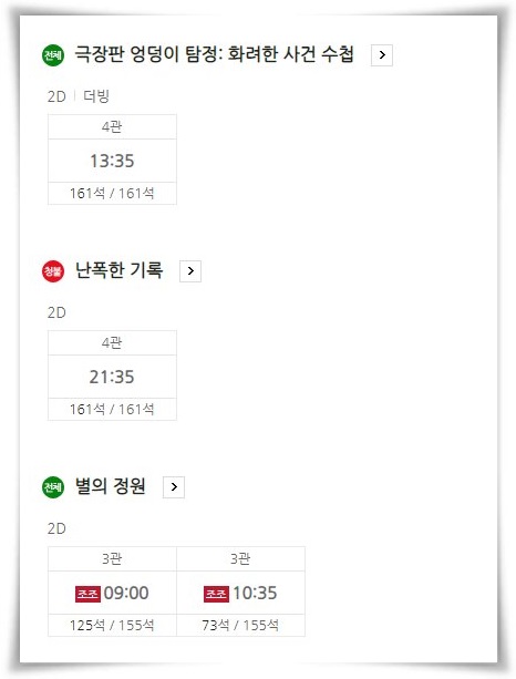 영화 보시는데 상영시간표 잘 참고하셔서 즐거운 영화 관람하시기 바랍니다.
