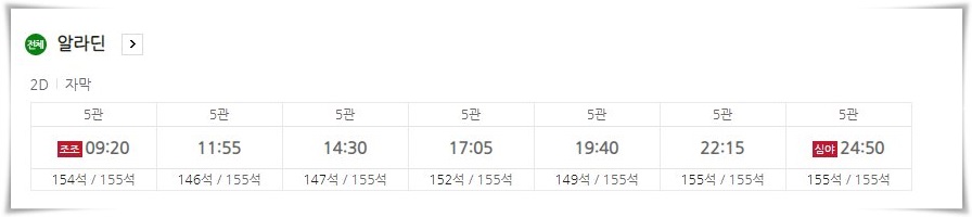 평일임에도 불구하고 화요일인 오늘의 상영시간표를 살펴보면 총 26번의 상영이 예정된 것을 확인할 수 있습니다.