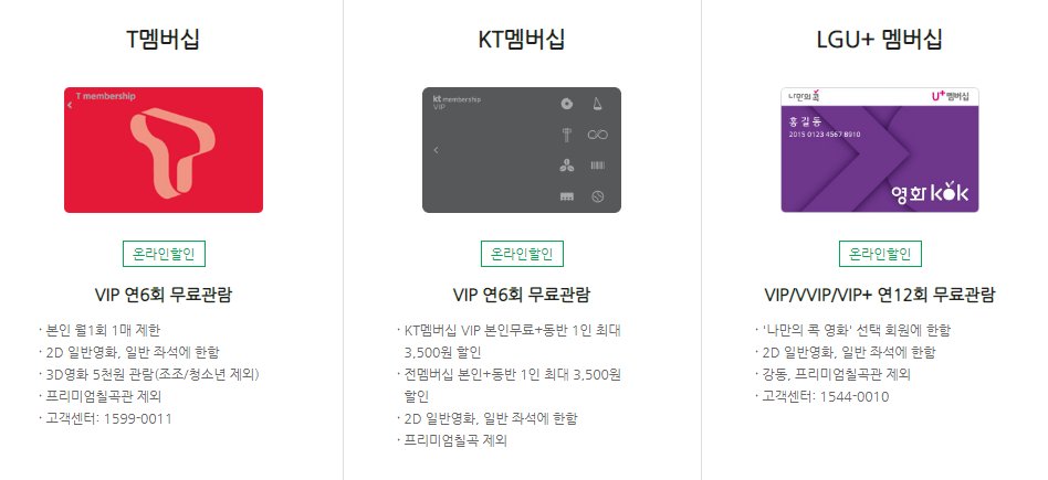 비싼 영화요금 때문에 부담이 되시는 분들은 영화 관람 시 다양한 할인 혜택을 이용하시는 것을 추천합니다.