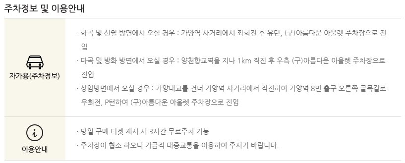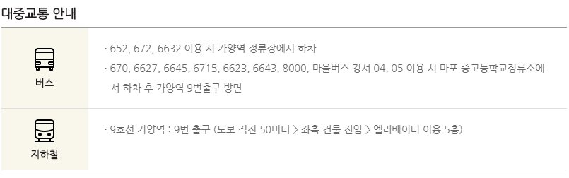 지하철뿐 아니라 가양역까지 운행하는 버스노선이 다양하게 있으니 방문 시 참고하시기 바랍니다.
