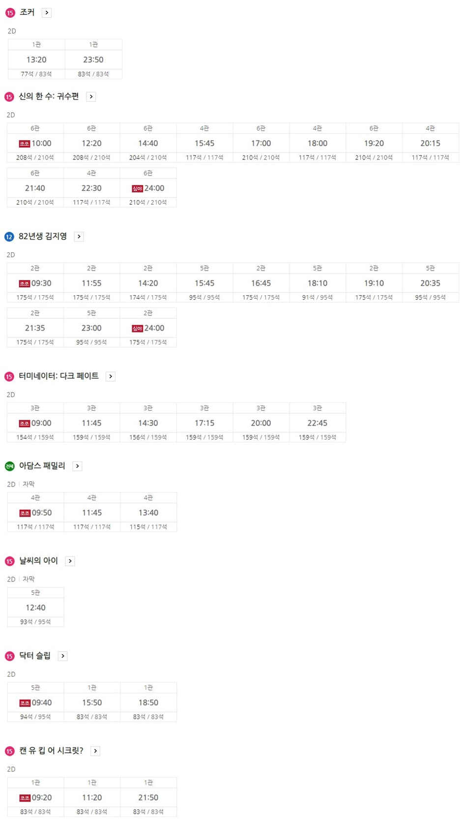 롯데시네마 영화 시간표는 매일 업데이트되고 있기 때문에 자세한 관람 일별 시간표는 홈페이지에서 참고하시기 바랍니다.