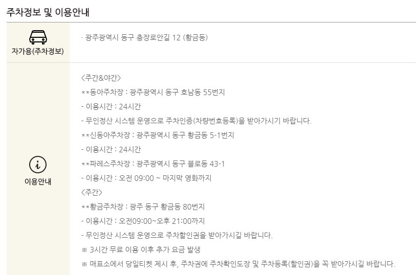 충장로 롯데시네마 상영시간표 및 주차장 요금안내