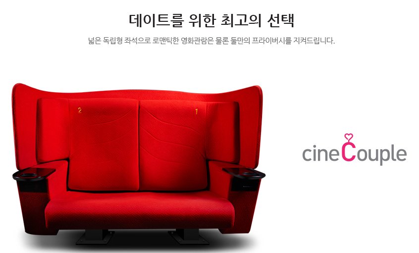또한 충장로점에는 씨네컴포트(리클라이너), cineCouple석 등의 좌석이 배치되어 있어 보다 안락하게 영화 관람을 할 수가 있습니다.
