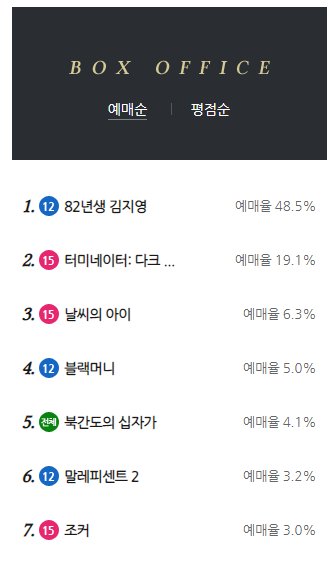 현재 롯데시네마 예매순위를 살펴보면 최근 개봉한 82년생 김지영이 가장 높은 예매율을 보이고 있습니다.