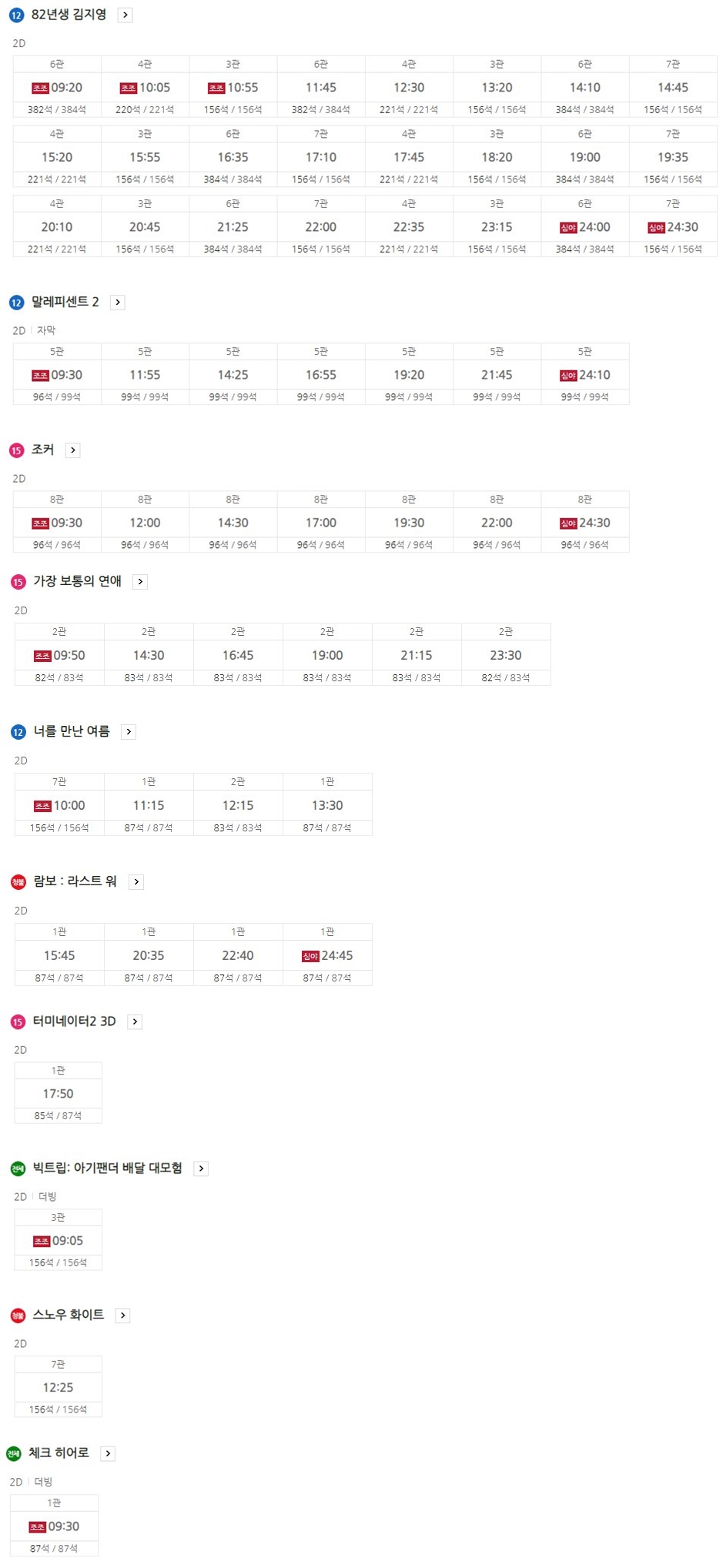 오늘기준 청주용암 롯데시네마 상영시간표 입니다. 롯데시네마 영화시간표의 경우 매일마다 상영작과 관람시간이 변경됩니다.