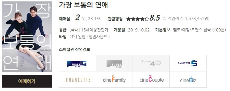 다양한 영화들인 만큼 영화 선택에 어려움이 있는 분들은 예매순위를 참고하시면 좋을 것 같습니다.