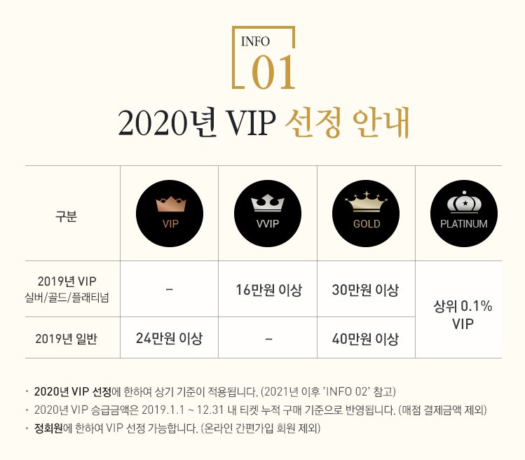 2019년 VIP 등급(실버, 골드, 플래티넘)의 경우 16만 원 이상 누적 시 VVIP 등급으로 승급