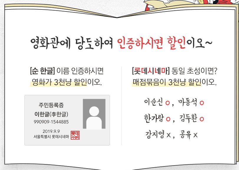 한글날을 맞이하여 전국의 롯데시네마에서 한글날 이벤트를 진행한다고 합니다.