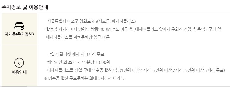 당일 영화 관람객들에게 3시간의 무료주차가 제공되고 있습니다.