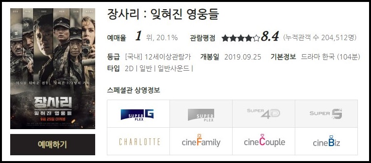 그중에서도 장사리 : 잊혀진 영웅들이 예매순위 1위를 기록하며 많은 호응을 얻고 있습니다.