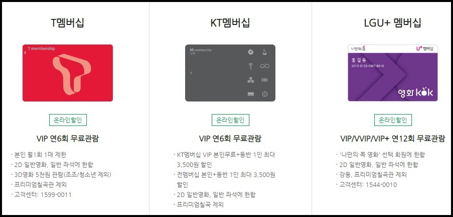 통신사 카드 또한 롯데시네마 영화예매 시 할인을 받을 수 있습니다. 각 통신사 vip의 경우 무료 영화도 제공되니 이점도 참고하시기 바랍니다.