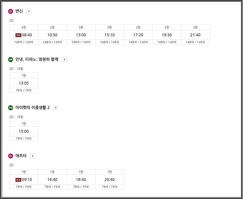 가끔 시간적인 여유가 있을 때는 조조영화도 조용하게 즐길 수 있는 재미가 있으니 참고해보시기 바랍니다.