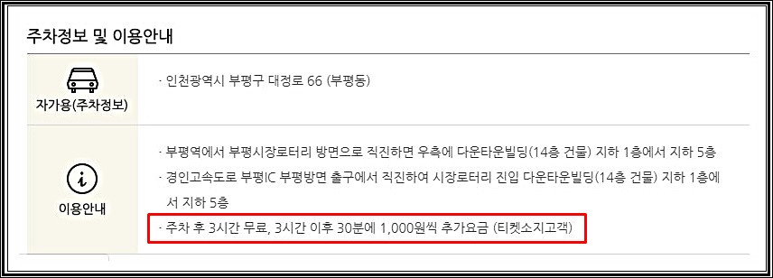 인천 부평 롯데시네마 위치 및 주차